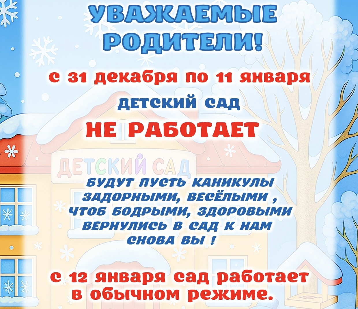 Мы стремимся к тому , чтобы детский сад был поистине домом радости , в который приходят с удовольствием . Домом в котором царят комфорт, уют и доброта, слышится музыка и задорный детский смех. Наш сайт создан для Вас, родители! Зная, как вы заботитесь о всестороннем и гармоничном развитии своих детей, как стараетесь быть ближе к своим детям и всегда владеть информацией о жизни своего малыша, мы будем стараться освещать все события происходящие в детском саду.