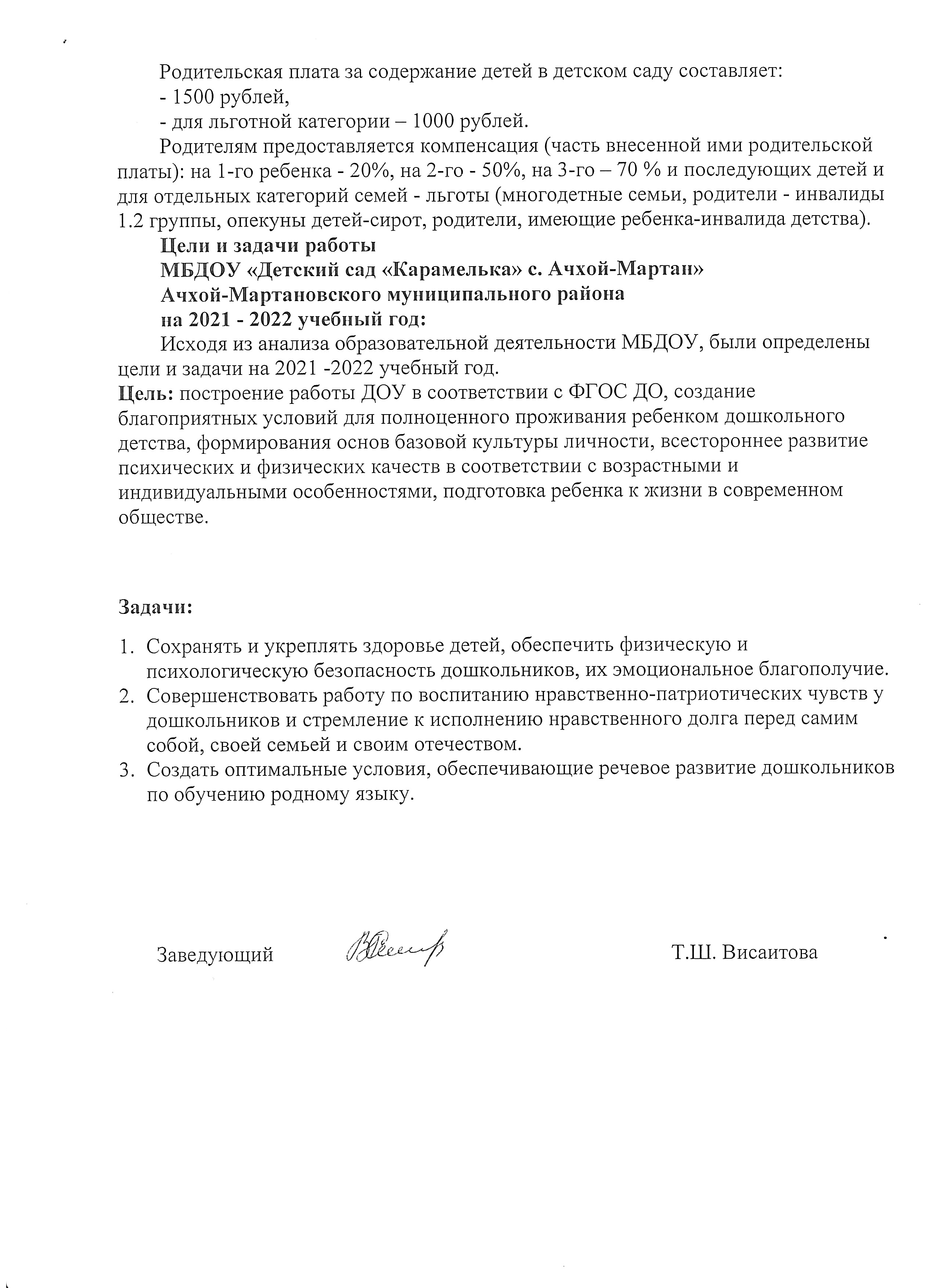 С уважением, заведующий МБДОУ "Детский сад "Карамелька" г.Ачхой-Мартан" Висаитова Таиса Шахитовна.